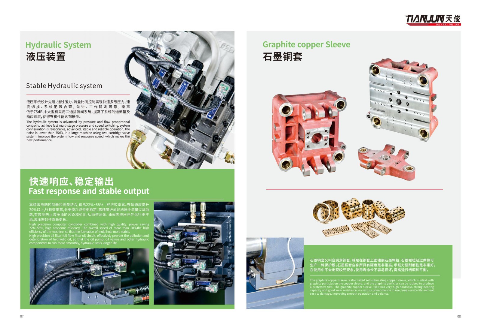 Guangdong Tianjun Intelligent Technology Co.,Ltd.is ahigh-tech enterprise specializing in research anddevelopment,design,production,sales and service ofplastic machinery manufacturing enterprises.Thecompany has large-scale mechanical productionfinishing equipment workshop,horizontal machiningcenter,CNC gantry milling machine,vertical machiningcenter,high-precision internal and external grindingmachine,CNC lathe and so on.The company implementsadvanced scientific management,adheres to "qualityfirst",and has a team of highly skilled professionalscientific and technological personnel.The self-developed high-efficiency precision injection moldingmachine has undergone strict design,raw materialselection,component assembly,and product delivery.Check gate.The product has passed the test of theNational Injection Molding Machine Testing Center;themain parameters,safety performance,hydraulic andelectrical system of the product have reached theadvanced level in the same industry;the high-efficiencyprecision injection molding machine has thecharacteristics of beautiful appearance,strong clampingability,low noise and low energy consumption.Thecompany has dozens of marketing outlets and after-salesservice departments across the country,and its productsare exported to Southeast Asia,the Middle East,SouthAmerica and other countries and regions,and are wellreceived by customers at home and abroad.The company has fully implemented the brand strategyconcept of"high,refined and advanced".